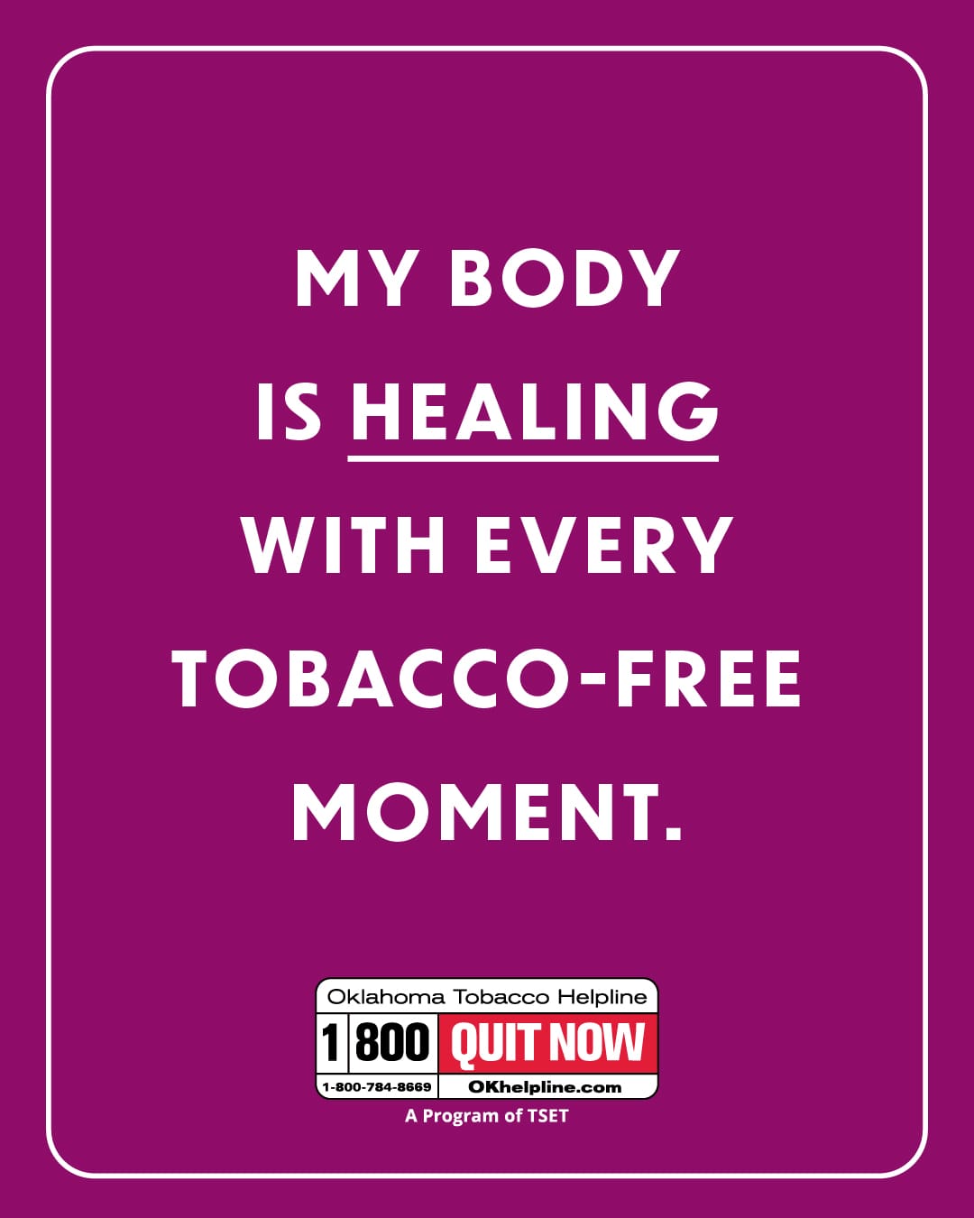 Your body heals with every tobacco-free moment.